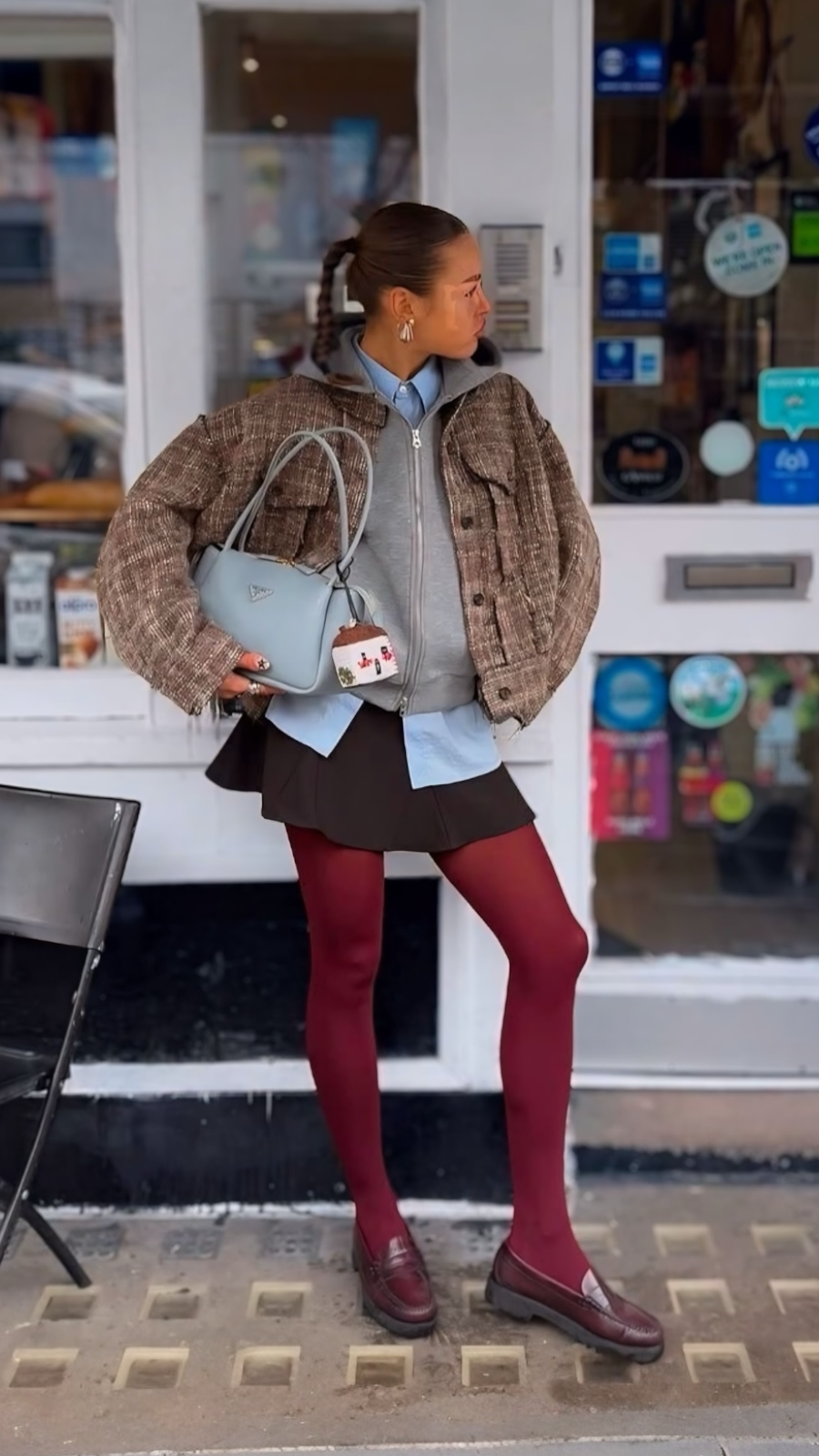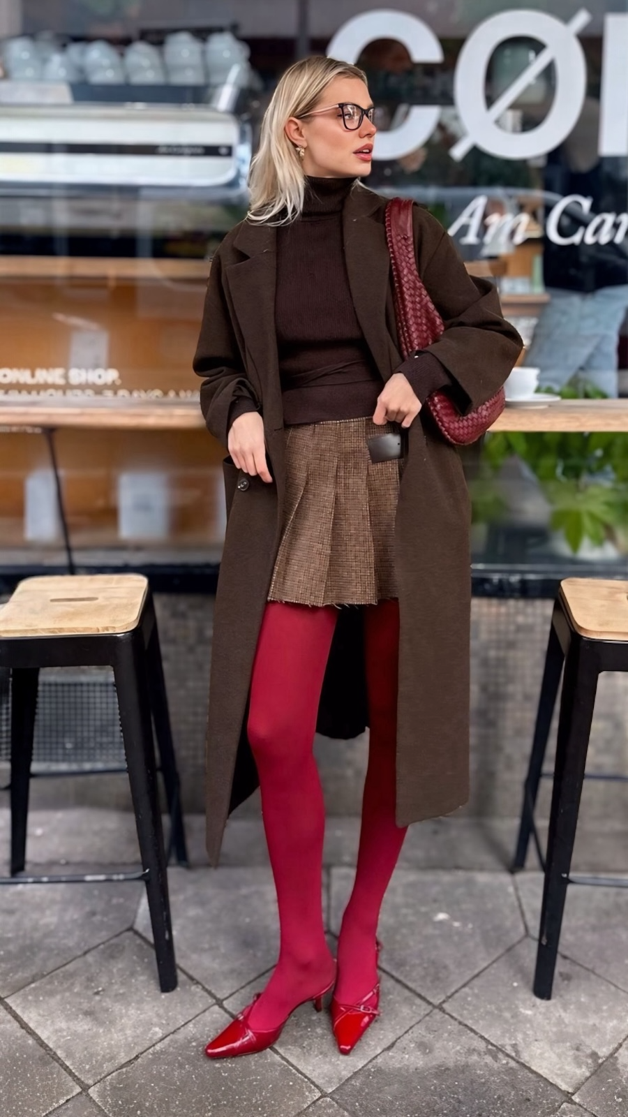 As the days get cooler, chocolate brown and burgundy stand out as must-have shades. Rich, deep, and effortlessly chic, they bring warmth and elegance to any outfits, whether you wear them as tights or socks.